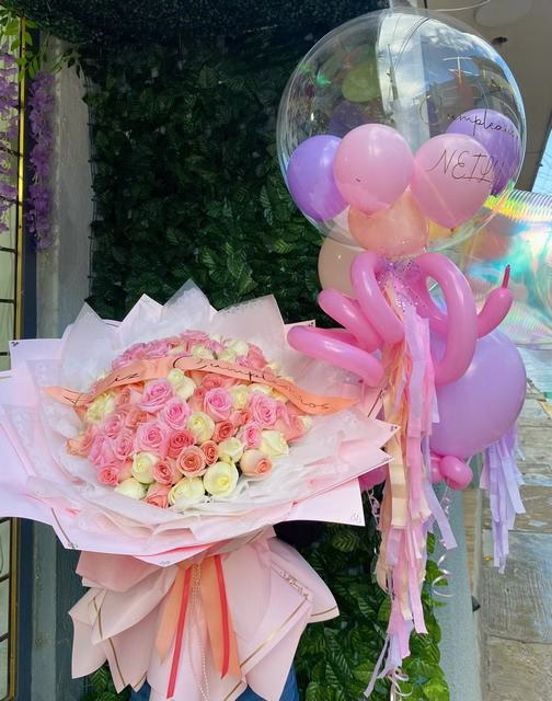 Combo de 70 rosas y globos de helio cantidad